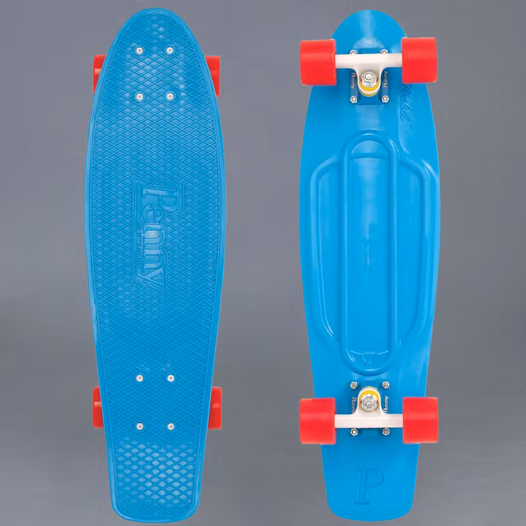 Penny Blue/Red 27" Komplett cruiser slalombräda som är en skön storlek. Snabb i svängen med mjuka hjul som kör över ojämnheter och grus så du inte behöver plocka upp brädan bara för att underlaget är lite sämre på en sträcka