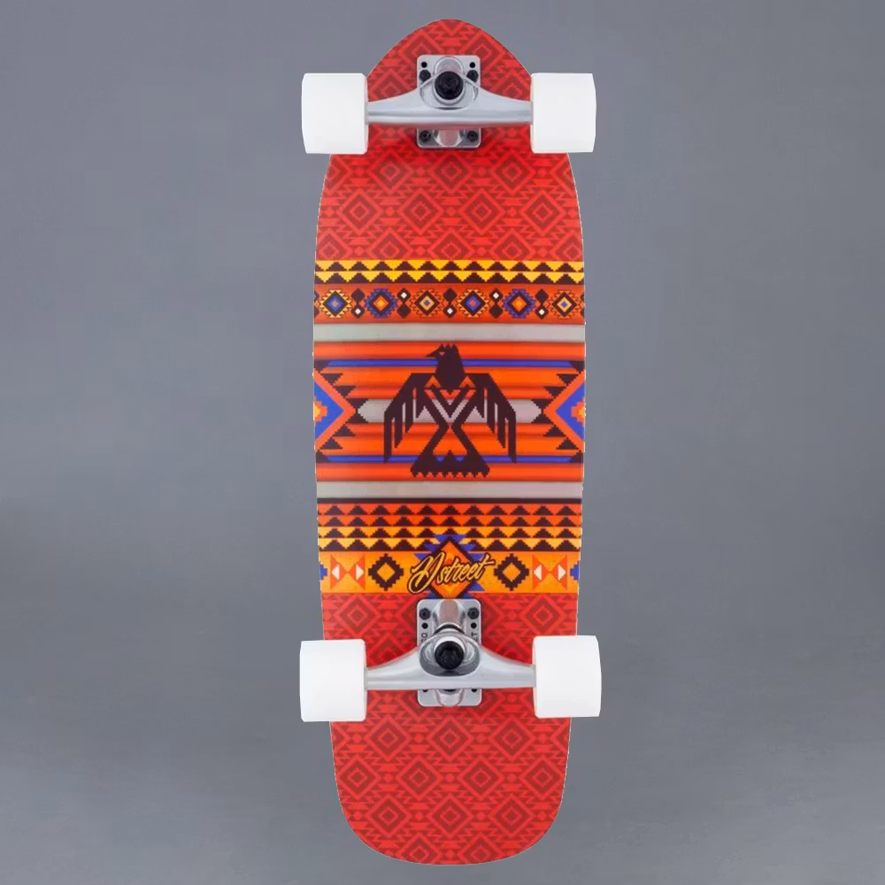 En Surfskate från D street, Surfskate är som att surfa på asfalt med otroligt bra svängradie så behöver man inte sparka fart med foten utan man carvar (svänger brädan fram och tillbaka) för att bygga upp och vidhålla sin hastighet.