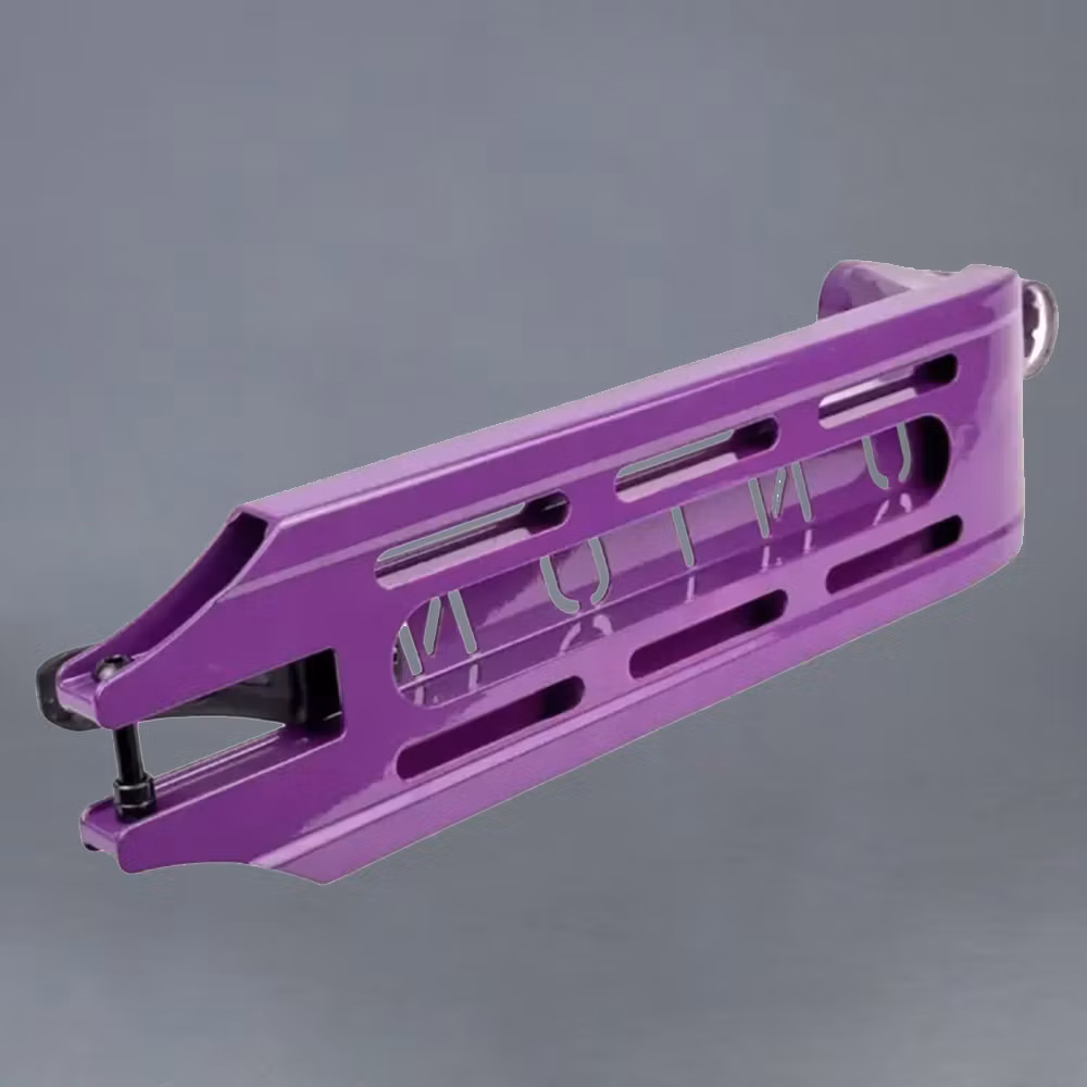 Exklusiv Purple Finish: Den djupa lila färgen ger din kickbike en unik karaktär. Det är en slitstark finish som behåller sin lyster även efter intensiva sessions i parken.